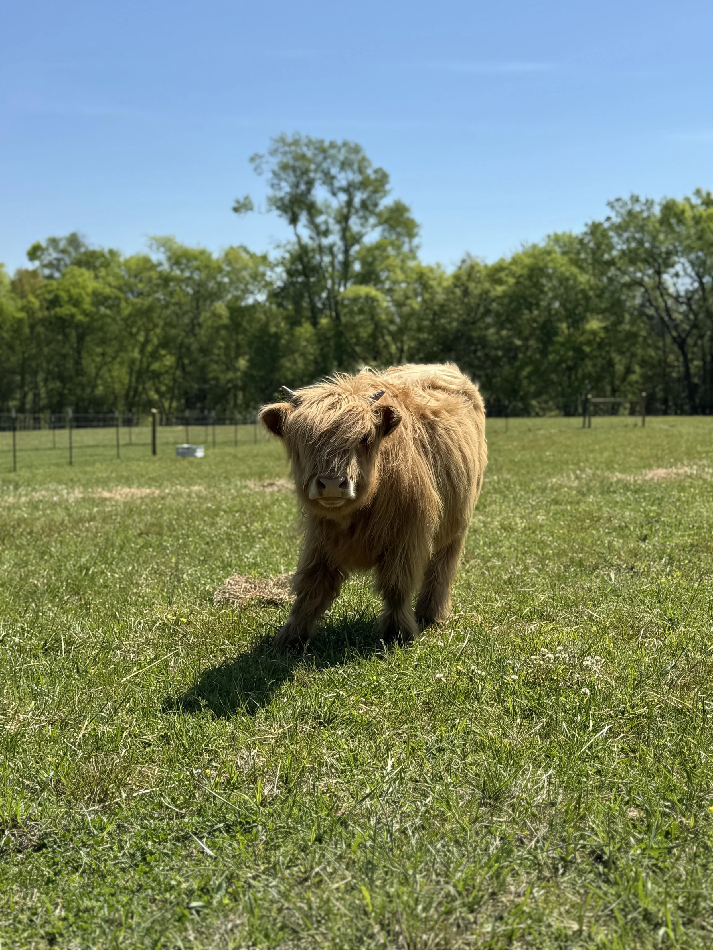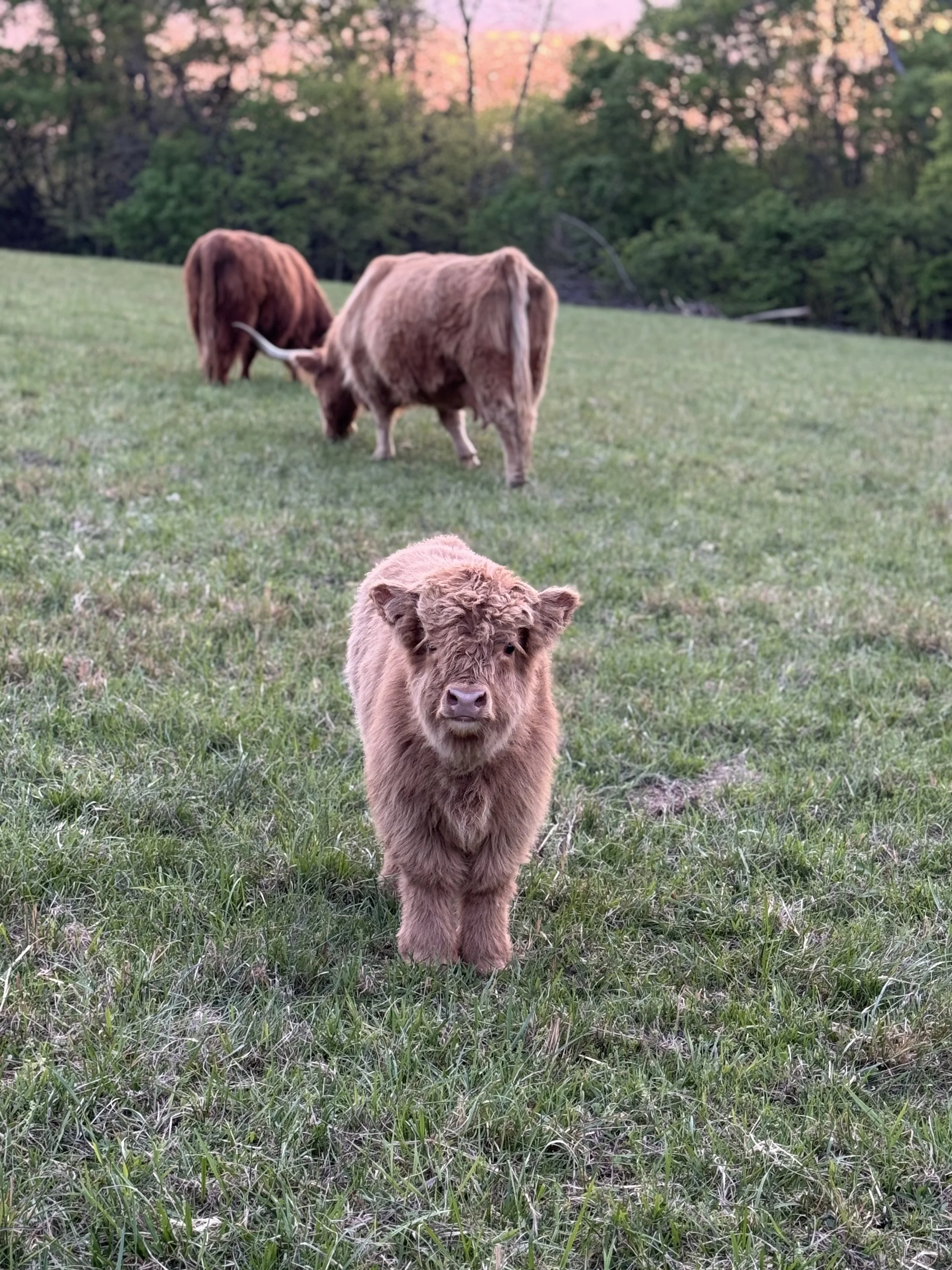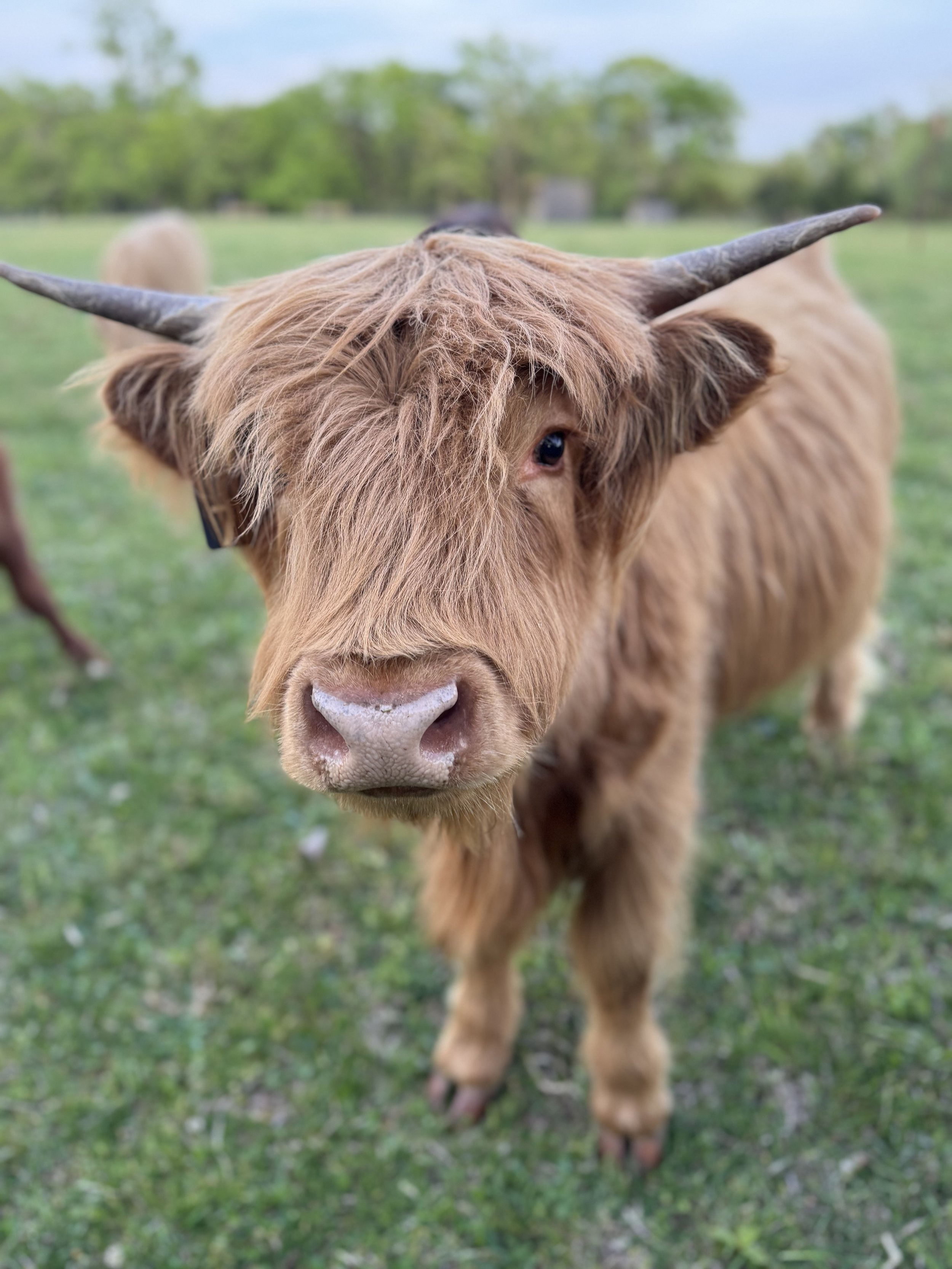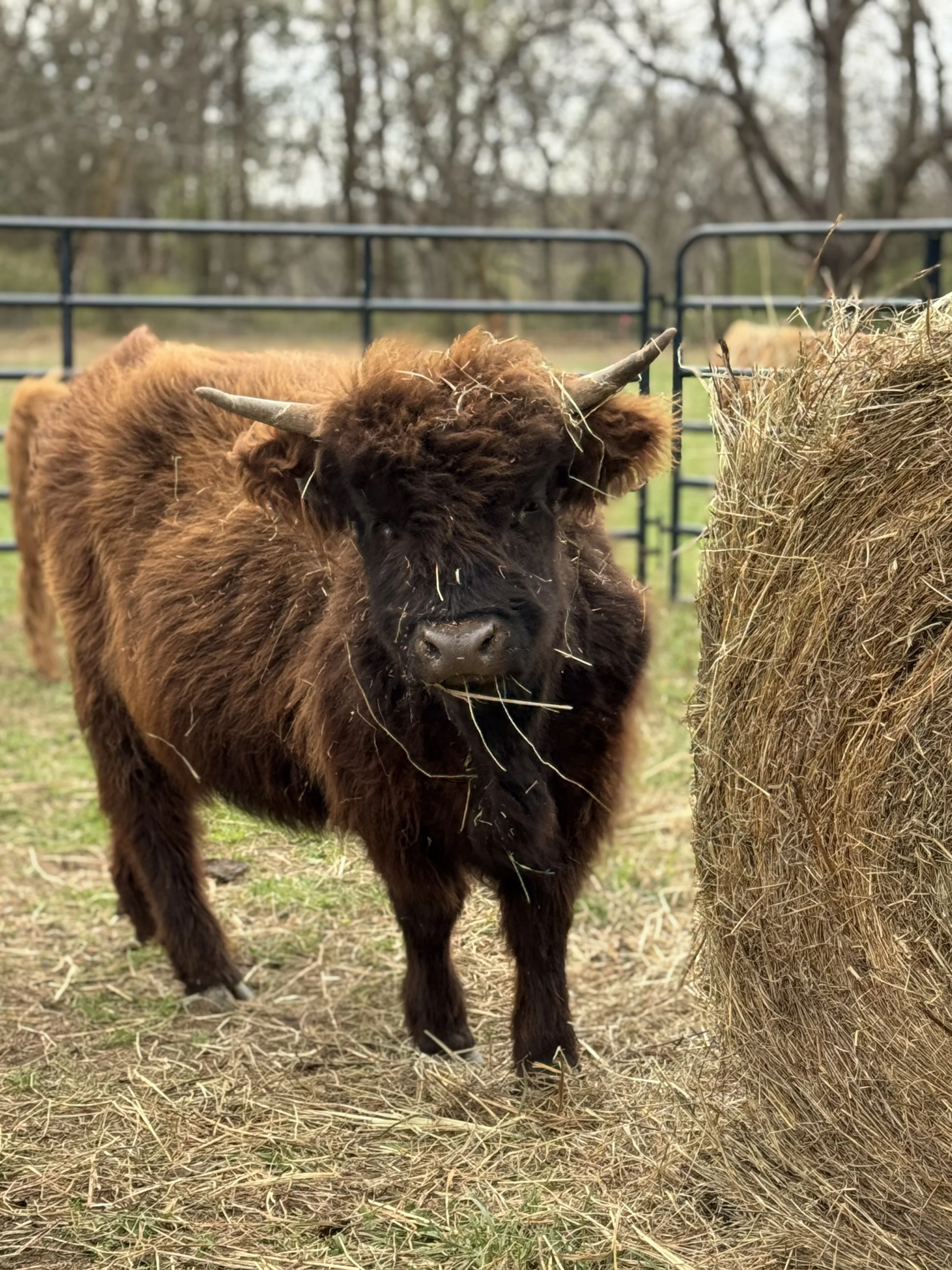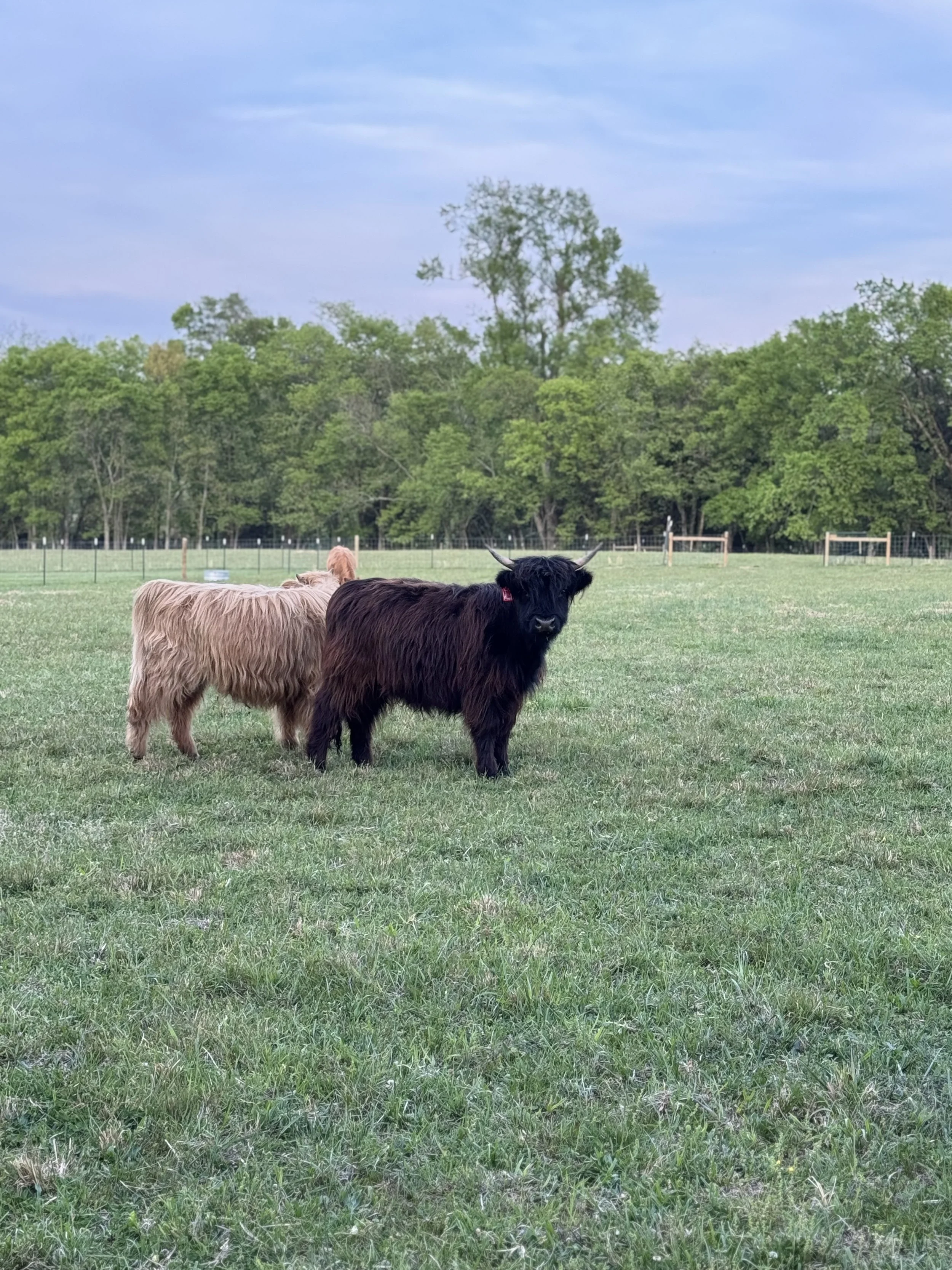 Herbert is very social, we have a video of him as a calf being led by his previous owner’s toddler! He also loves to socialize with the Lady Angus behind our property, and at those times, we like to say he is Herbatious! When he isn’t romancing cows, he enjoys treats, pets, and rubbing on cedar trees. Herbert also has Greek curls and so we gave him a middle name of Hercules.